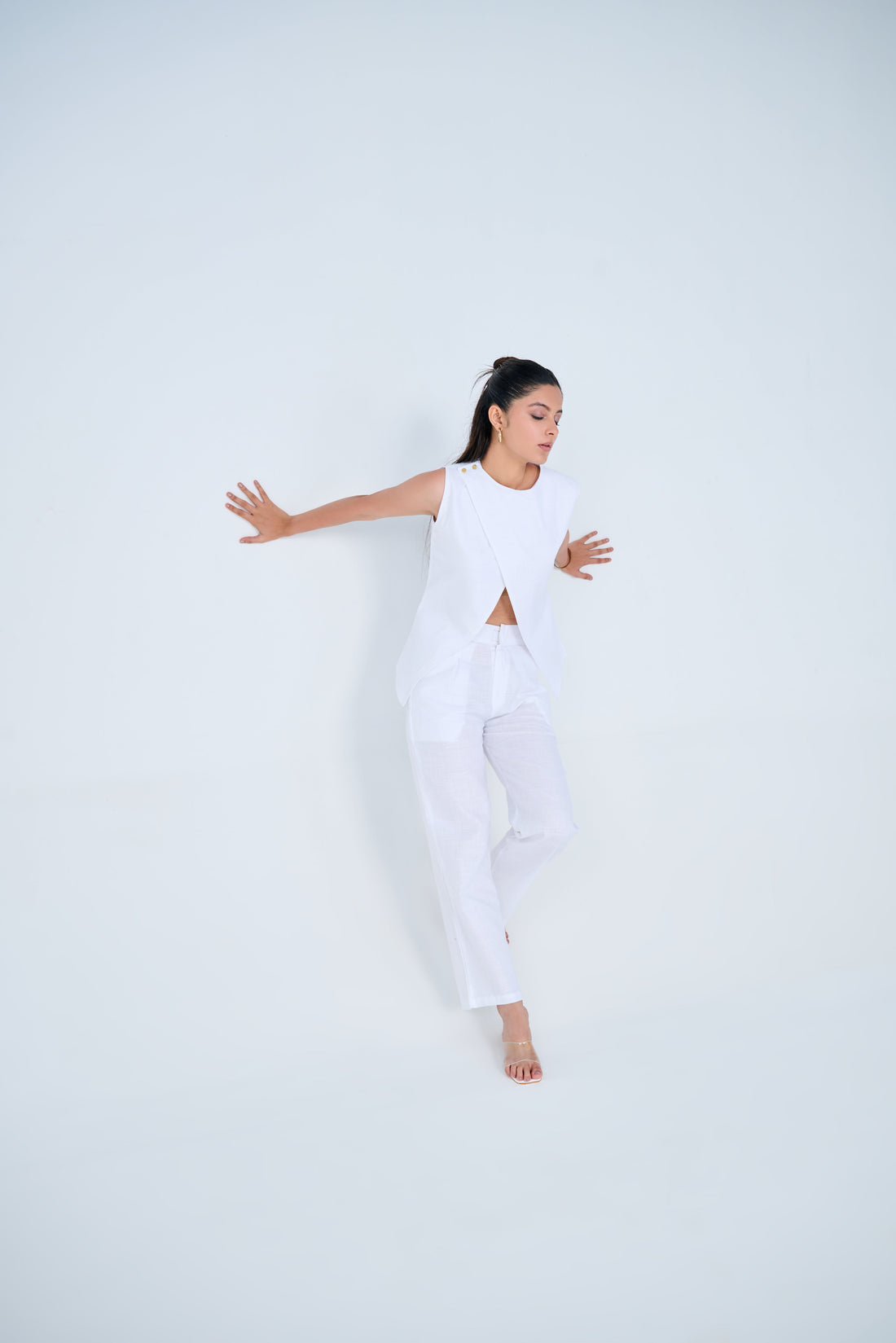 Cotton Blend Slit Formal Co-ord Set ( White )