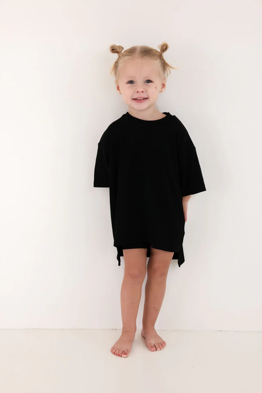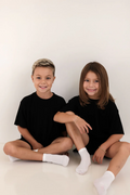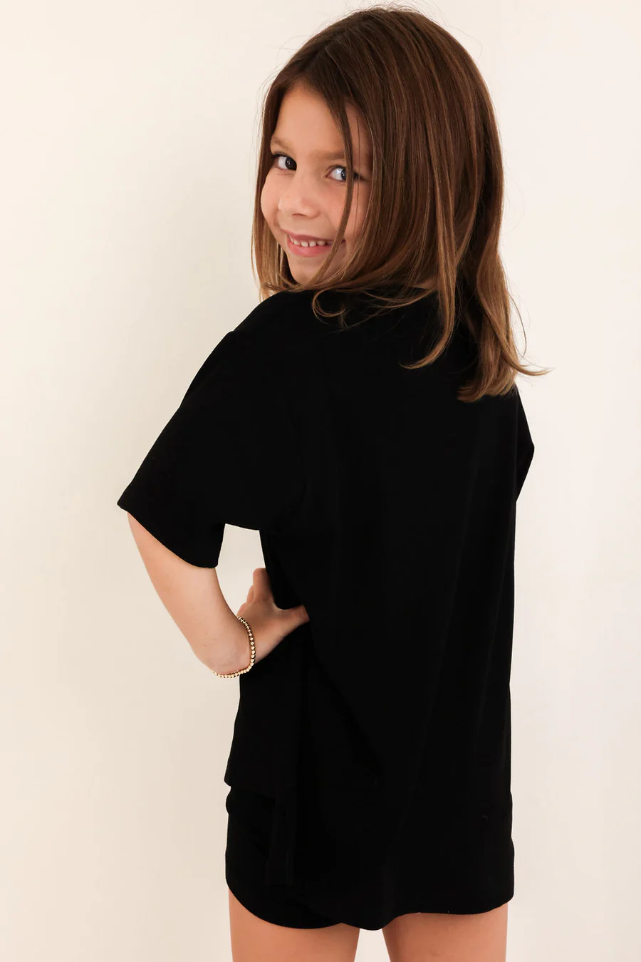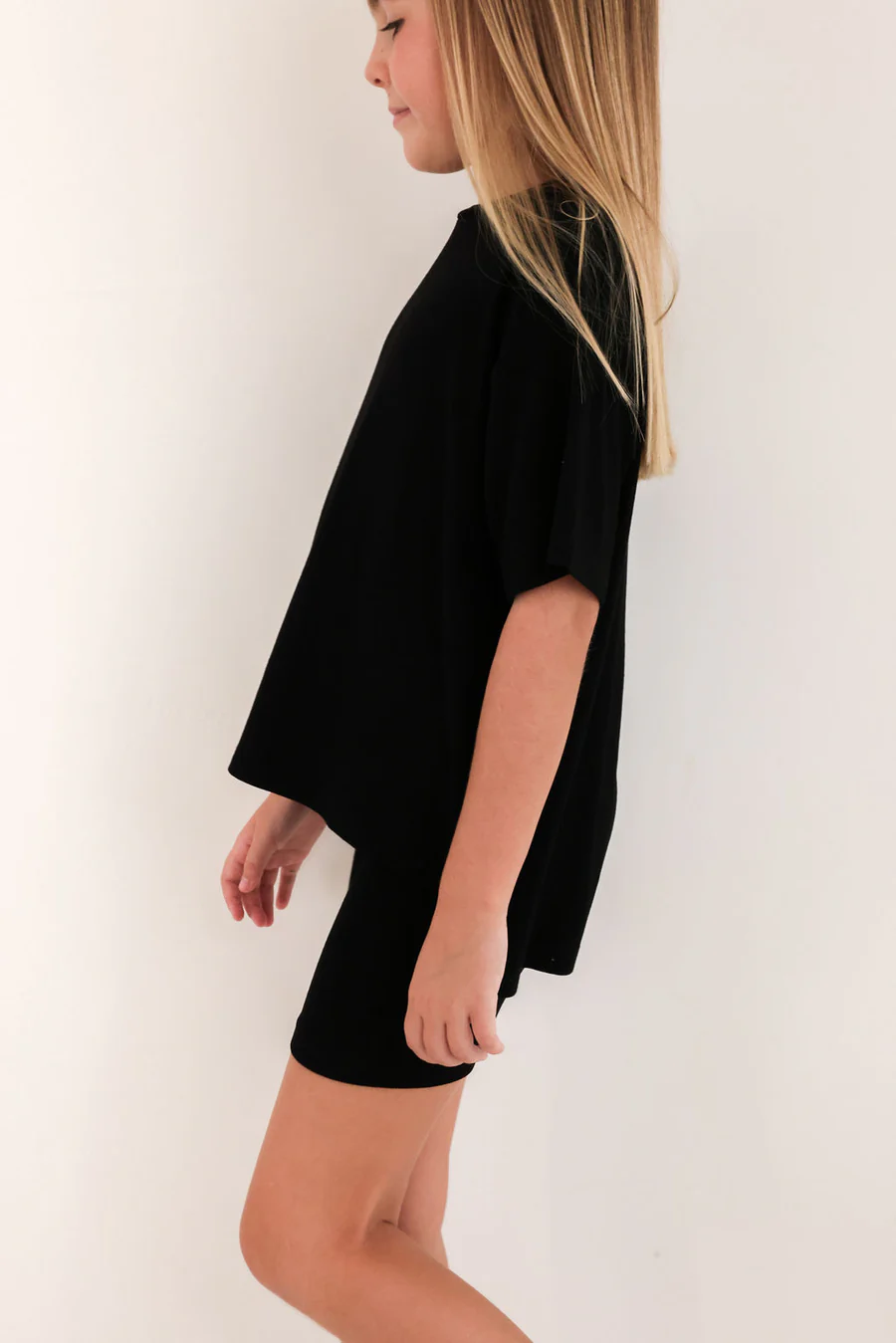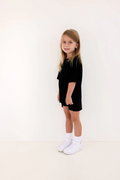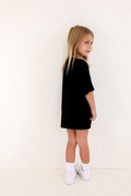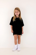 The set you have been loving is now available for your little one! The perfect play date, school, or mommy and me outfit. This oversized boyfriend tee comes with a pair of matching biker shorts. The material is soft, very stretchy and ribbed. The best part about these biker shorts is they do not cut into your waist, they lay flat. They are tight enough to hold you in, but loose enough to feel relaxed and comfortable. The relaxed fit of this outfit has made it a 10/10.