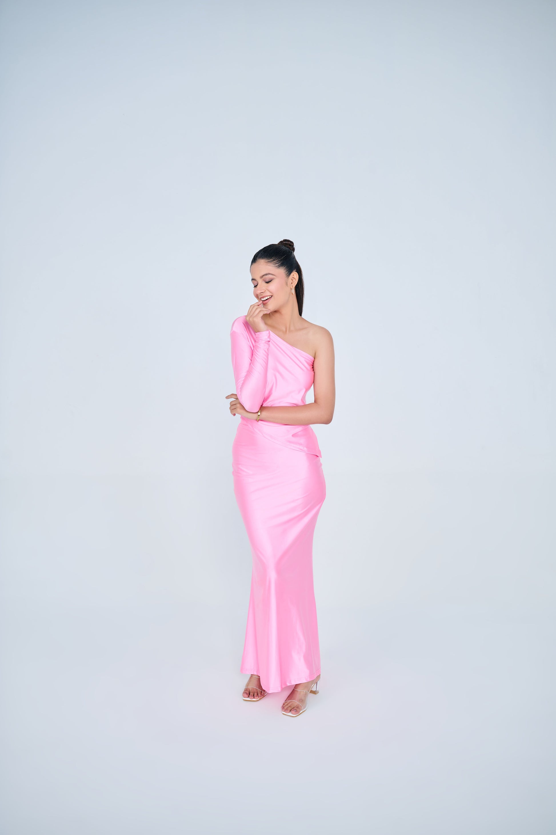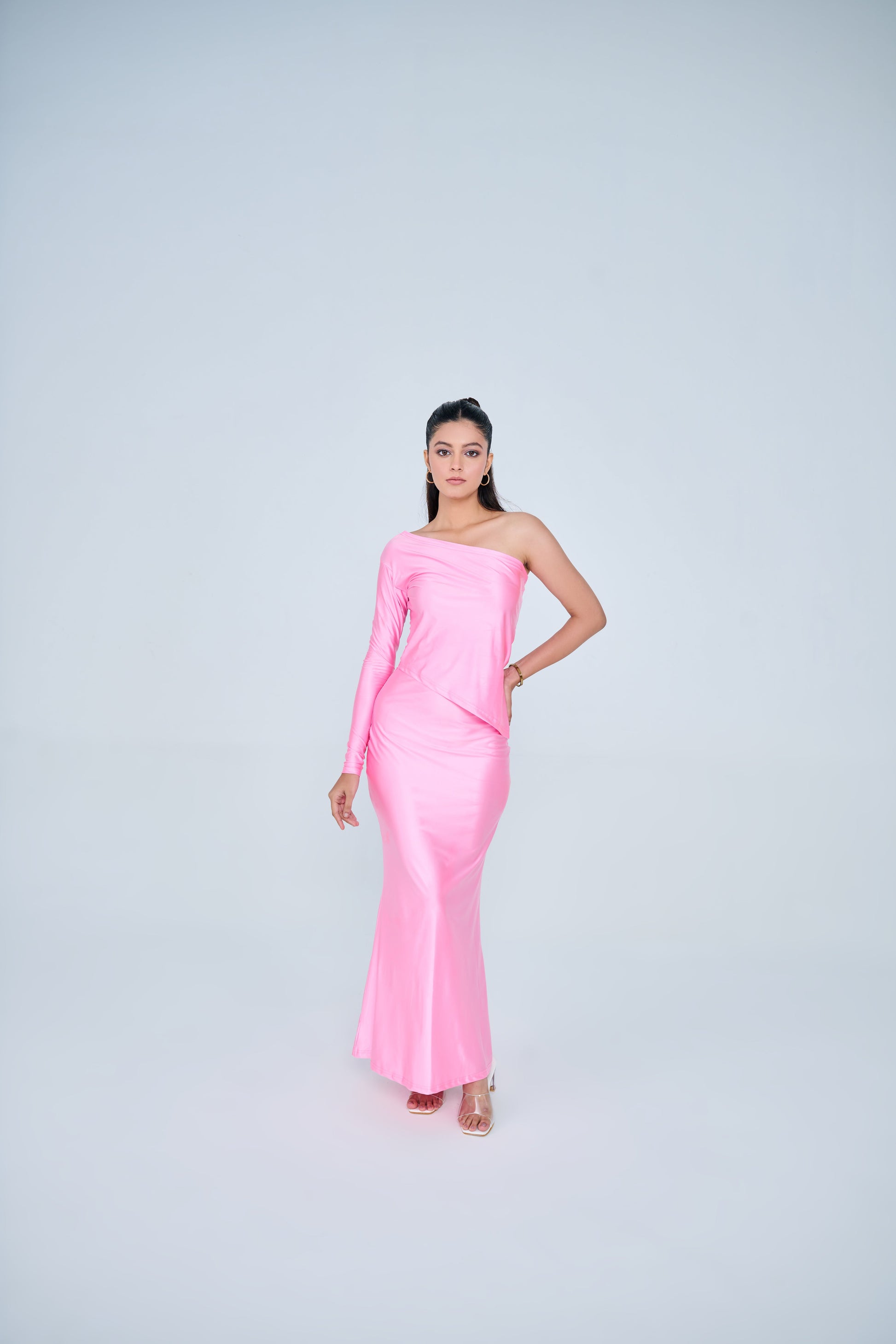 Classic One Shoulder & Skirt Co-ord Set ( PINK )