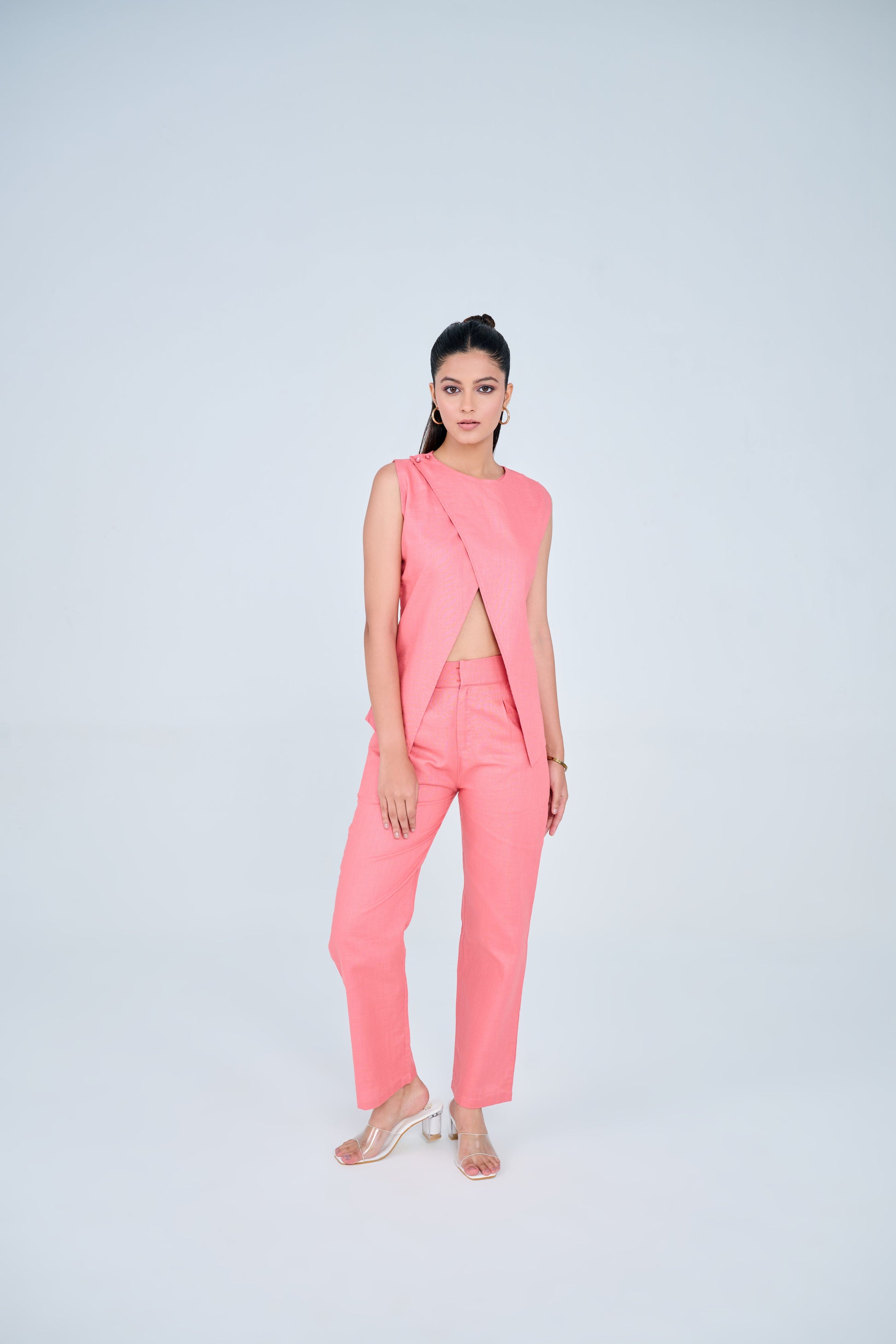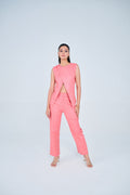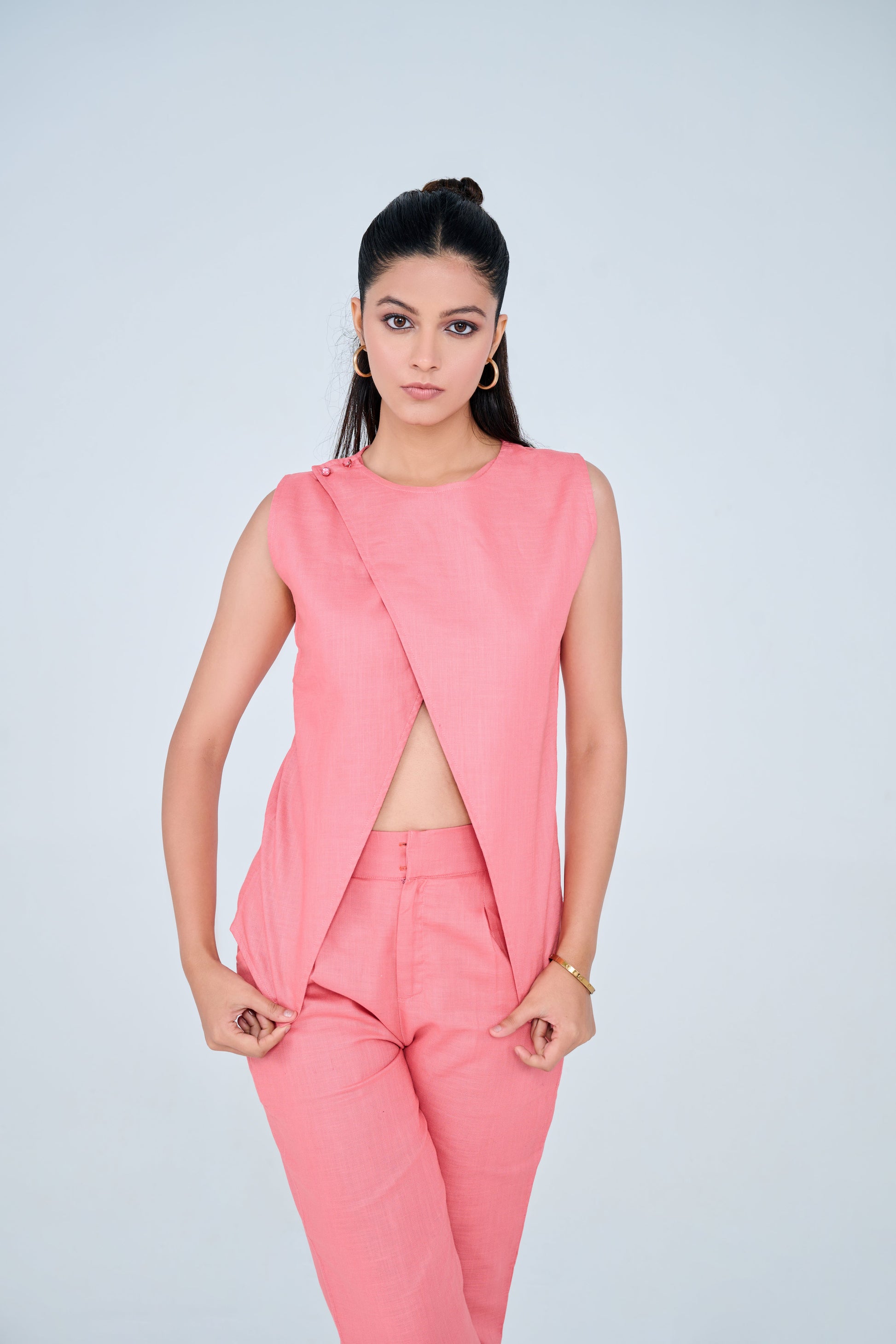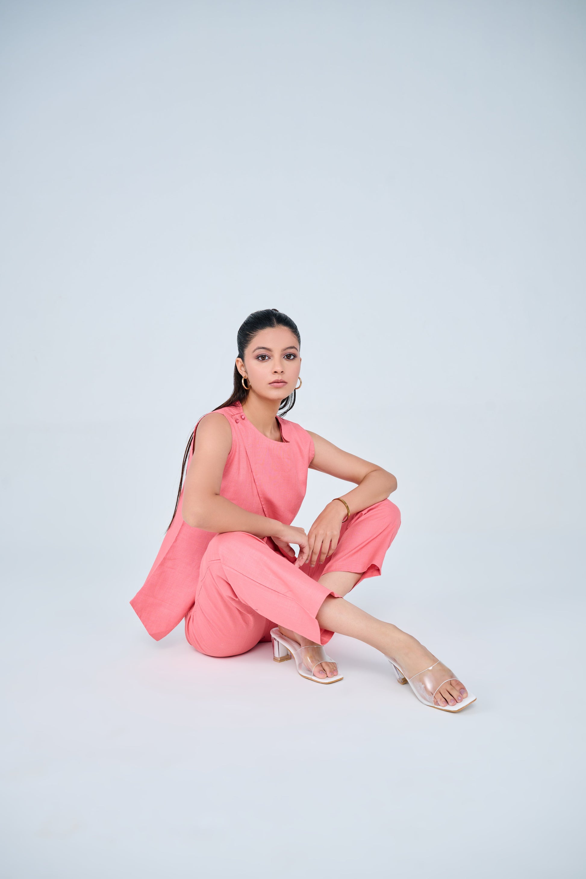 Cotton Blend Slit Formal Co-ord Set ( Peach )