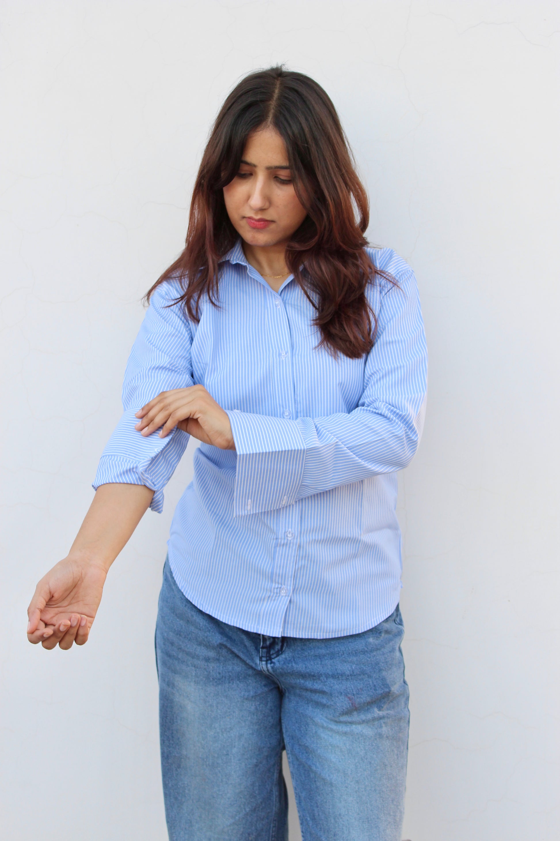 This striped shirt is designed to strike the perfect balance between formal elegance and semi-casual ease. Featuring crisp, clean stripes and a tailored fit, it adds sophistication to your office look while staying relaxed enough for after-hours plans. Crafted from breathable fabric, it keeps you comfortable all day long. Pair it with trousers for a sharp professional vibe or with denims for an easygoing weekend look. - Shirt Collar