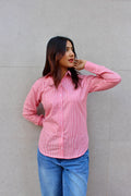 This striped shirt is designed to strike the perfect balance between formal elegance and semi-casual ease. Featuring crisp, clean stripes and a tailored fit, it adds sophistication to your office look while staying relaxed enough for after-hours plans. Crafted from breathable fabric, it keeps you comfortable all day long. Pair it with trousers for a sharp professional vibe or with denims for an easygoing weekend look. - Shirt Collar