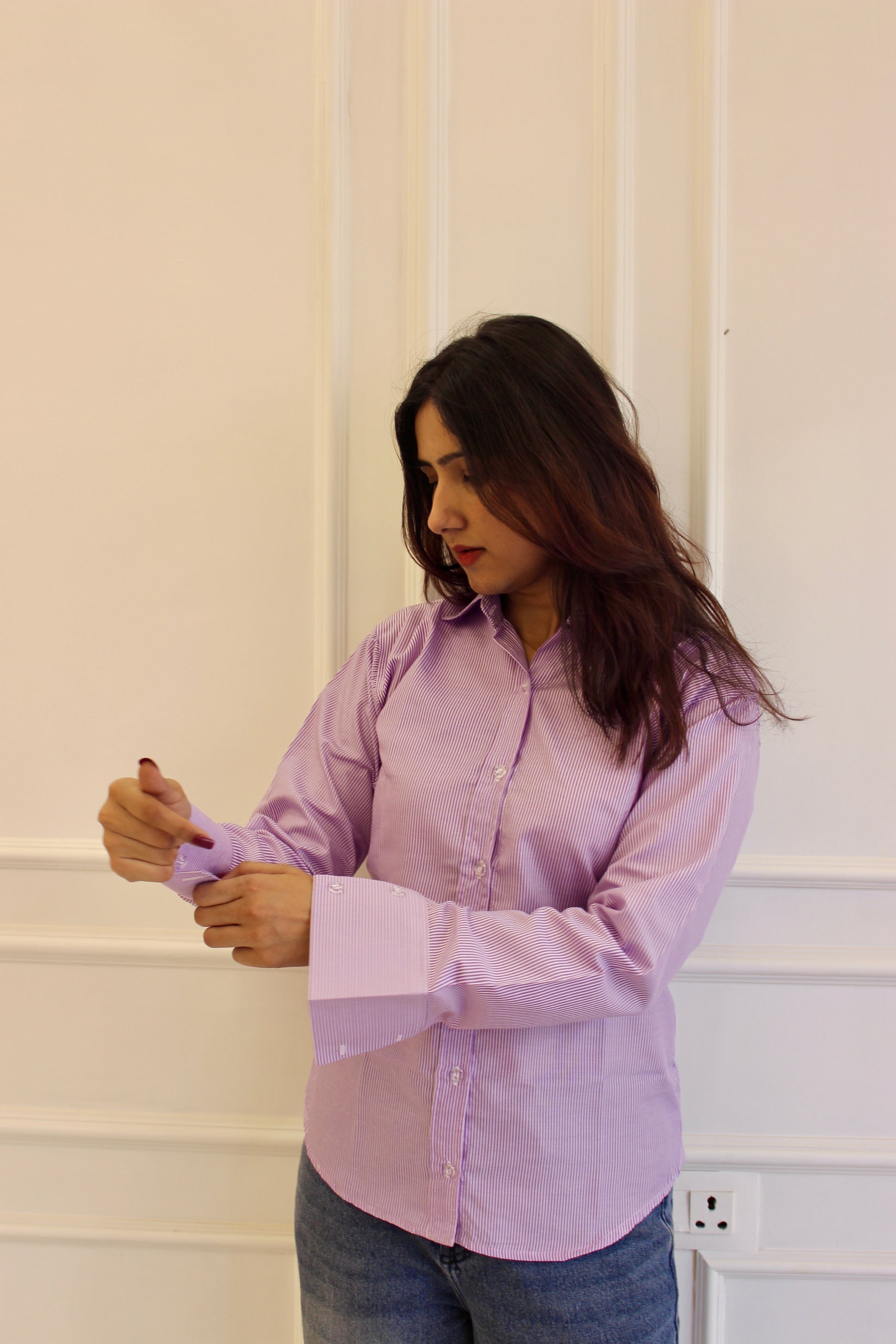 This striped shirt is designed to strike the perfect balance between formal elegance and semi-casual ease. Featuring crisp, clean stripes and a tailored fit, it adds sophistication to your office look while staying relaxed enough for after-hours plans. Crafted from breathable fabric, it keeps you comfortable all day long. Pair it with trousers for a sharp professional vibe or with denims for an easygoing weekend look. - Shirt Collar