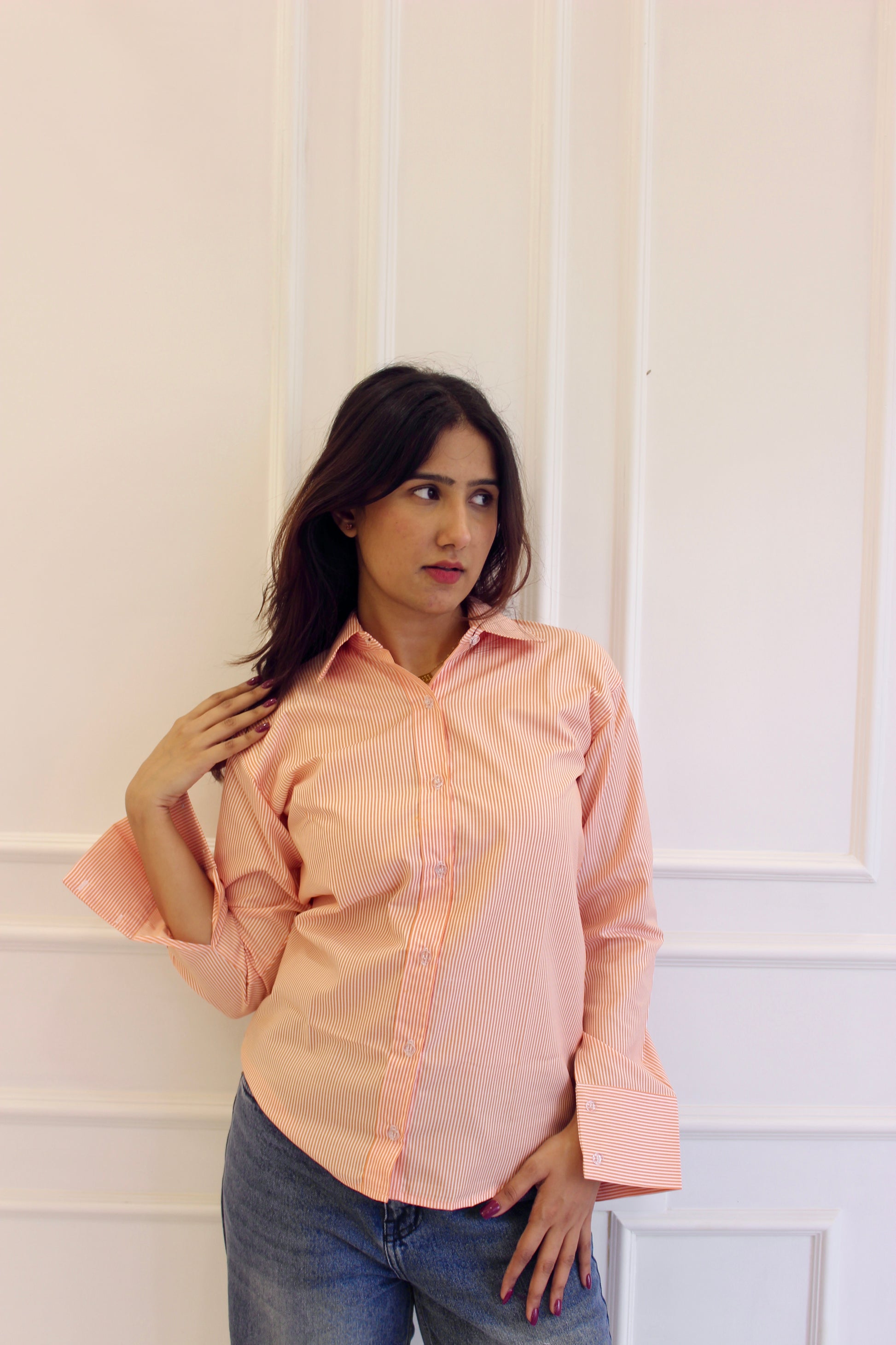 This striped shirt is designed to strike the perfect balance between formal elegance and semi-casual ease. Featuring crisp, clean stripes and a tailored fit, it adds sophistication to your office look while staying relaxed enough for after-hours plans. Crafted from breathable fabric, it keeps you comfortable all day long. Pair it with trousers for a sharp professional vibe or with denims for an easygoing weekend look.