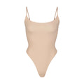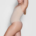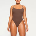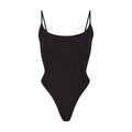 With its wide scoop neckline and low back providing the perfect foundation under clothing, this Cami Bodysuit is an essential wardrobe foundation. Features a high cut leg opening and thong back that remains invisible under clothing.