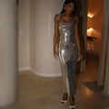 Get ready to shine at your next party in our sparkling silver and red maxi dress! 🔥 This dress is the perfect combination of glamour and playfulness, guaranteed to make a statement. ✨ With its sparkling fabric, you'll be sure to shone all night long 🥂